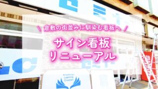 岡山県倉敷市のKLCセミナー倉敷校様にてサイン看板の撤去・新設工事を実施。倉敷市景観条例に配慮したサイン看板の施工事例のご紹介です。