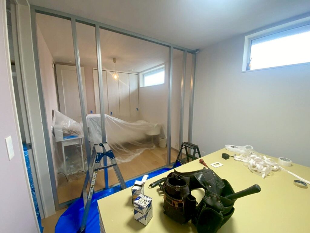 子供部屋の間仕切りを新設していきます。