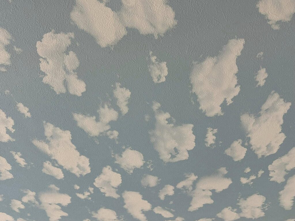 特に注目されたのが、天井一面に広がる「青空柄のクロス」。