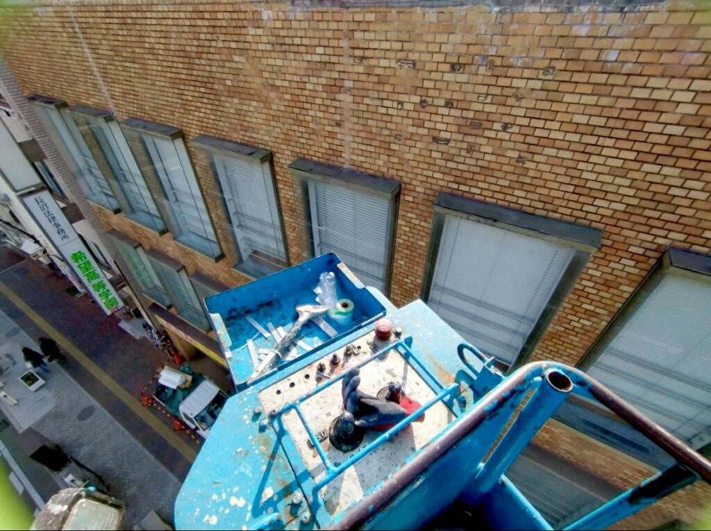 倉敷駅前での高所作業となりましたが、